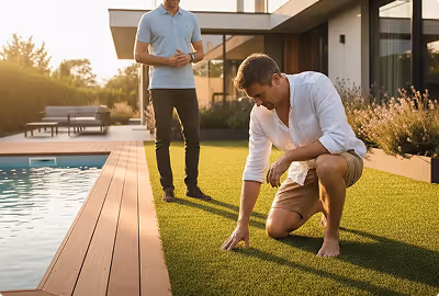 Bring 30 years of french quality artificial grass for your UAE pool, 100% turnkey.