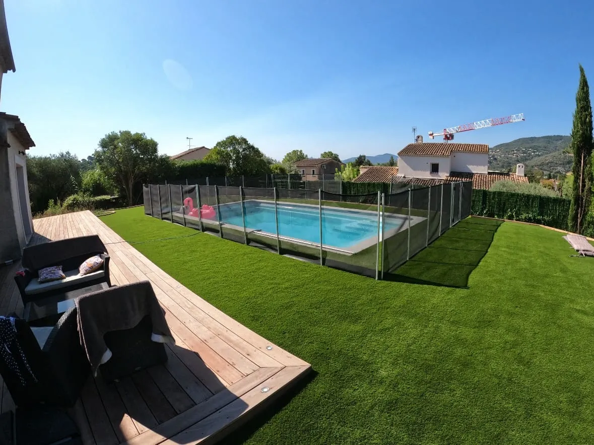 Surrounding the pool, we laid a 150 m² exotic wood deck on stilts, providing a seamless transition between the garden and the water.